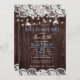 Rustic country couple baby shower backyard barbecue invitation on dark brown barn wood featuring blue typography, white flowers, lace borders, and strings of twinkle lights. +++++++++++++++ The invitation is suitable for summer autumn fall outdoor garden backyard rustic country bbq boy baby shower parties.