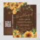 Rustic country yellow golden sunflowers botanical greenery budget affordable all in one brown wood wedding invitation with custom photo, QR code to website, and online rsvp featuring a chic handwriting faux gold calligraphy script. +++++ Suitable for rustic modern summer or autumn fall garden or outdoor backyard farmhouse barn weddings.