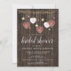 Invitación Rustic Wood Folk Art Heart Bridal Shower