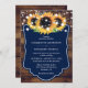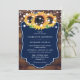 Invitación Rustic Wood Navy Blue Sunflower Wedding