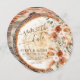 2026 trending rustic wood ring save the date magnet with circular couple photo framed in distressed wood texture. Surrounding boho florals: terracotta roses, eucalyptus, pampas in muted earthy tones for organic luxury. Personalize date, names & venue – perfect for garden weddings. Strong magnet back for fridge display, eco-friendly keepsake that matches your wood slice suite!