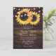 Esta rústica invitación a celebrar bodas floridas con girasoles con fondo de madera es perfecta para invitar a sus invitados a su rústica fiesta de bodas de campo/granero inspirada en los girasoles.