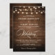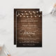 Invitación Rustic Wood String Lights Calligraphy Boda