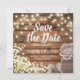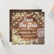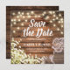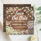Invitación Rustic Wood String Lights & Lace Save Date Inv