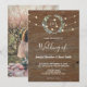 Invitación Rustic wood string lights monogram photo Wedding