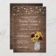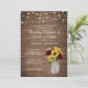 Invitación Rustic Wood Sunflowers Burgundy Mason Jar Boda