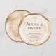 Rustic woodland wedding invitation featuring a round wood slice design with natural tree ring background texture (*background is printed on round paper). Perfect for forest, outdoor, barn, and country weddings. This flat round invitation has a rustic wood grain look and can be fully personalized with your names, date, and wedding details.