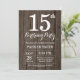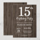 Invitación rústica del 15º cumpleaños. Fondo De Madera Rústica. Vintage Retro Cumpleaños. Cumpleaños de niños. Invitar a un niño o Chica. 13.º 15.º 16.º 18.º 20.21.30.40.50.60.70.80.90.100, cualquier edad. Para una mayor personalización, haga clic en el botón "Personalizar" y utilice nuestra herramienta de diseño para modificar esta plantilla.