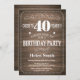Invitación rústica de cumpleaños número 40. Tipografía blanca. Fondo De Madera Rústica. Cumpleaños de adultos. Cumpleaños de hombres o mujeres. Invite a un niño o a una Chica. 13.º 15.º 16.º 18.º 20.21.30.40.50.60.70.80.90.100. Cualquier edad. Para una mayor personalización, haga clic en el botón "Personalizar" y utilice nuestra herramienta de diseño para modificar esta plantilla.