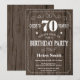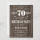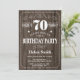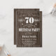 Invitación rústica de cumpleaños número 70. Tipografía blanca. Fondo De Madera Rústica. Cumpleaños de adultos. Cumpleaños de hombres o mujeres. Invite a un niño o a una Chica. 13.º 15.º 16.º 18.º 20.21.30.40.50.60.70.80.90.100. Cualquier edad. Para una mayor personalización, haga clic en el botón "Personalizar" y utilice nuestra herramienta de diseño para modificar esta plantilla.