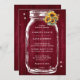 Invitación Rústica Burgundy Wood Sunflower Mason Jar Boda