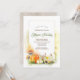 Calabazas, girasoles, margaritas, trigo, hojas coloridas invitaciones a fiestas de cumpleaños de otoño rústicas