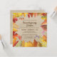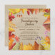 Este diseño vacacional cuenta con flores rústicas de color naranja, rojo y verde de cascada y follaje sobre un fondo de arpillera. Edite el texto en los cuadros de texto para personalizarlo en la Cena de Friendsending. Al revés hay un patrón a rayas de color beige y agua blanca.