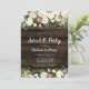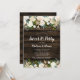 Hermosas flores de color blanco y dorado y acento verde en esta elegante invitación campestre dulce fiesta de 16 años. Este diseño presenta luces de hilo y un fondo de madera oscura de granero, con un tipo de letra de guión moderno. Perfecto para un dulce de temática occidental de 16 años. NO ES UN RELIEVE METALIZADO DORADO REAL