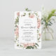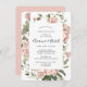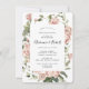 Elegantes rosas rosadas de acuarela y hojas verdes oscuras crean un bonito marco floral. Los detalles de su brunch con los recién casados están en el centro.