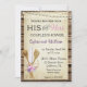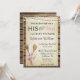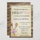 La invitación a la ducha Rustic Couples Bridals incluye un fondo de madera de granero, utensilios de cocina de madera envueltos con flores y luces colgantes.