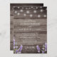 Impresión rústica de madera con lavanda y cuerda blanca ilumina la invitación a la boda con código QR en la parte posterior a RSVP.