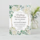 Invite a sus huéspedes a una celebración llena de encanto natural, adornada con eucaliptos exuberantes, delicadas rosas blancas y un toque de oro. Establezca el tono de su día especial de la manera más encantadora posible. Crea recuerdos con tus seres queridos y comparte la alegría de tu unión. No esperes más, haz que tus sueños de boda se hagan realidad con nuestra "Invitación Rústica de la Verde Oro Geométrica y de las Rosas Vecinas y Blancas"!