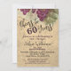 60º cumpleaños Saludos a 60 años de una invitación rústica vintage...Con obras de arte originales, el pergamino, el fondo de corcho le da un aspecto y un toque de la antigua región vinícola... ¡perfecto para su celebración especial! En esta colección se ofrecen otros suministros y favores de fiesta. Todo el texto se puede personalizar o cambiar a su edad o texto deseado. Disponible en versión impresa o digital. No dude en ponerse en contacto con el equipo de diseño de Zazzle para obtener ayuda sobre la personalización. Todas las obras de arte y diseño están protegidas por FeliseDesigns, Cheers!