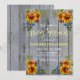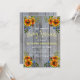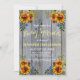 Celebra a tu nuevo bebé con amigos y familiares e invítalos con esta linda invitación rústica de madera de granero gris y girasoles para baby sprinkle. Este diseño presenta madera de granero gris claro y hermosos girasoles con acentos azules oscuros. Personaliza el texto y la fuente a tu gusto y combina con otros productos de esta colección de baby shower.