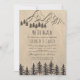 Celebre su amor rodeado de naturaleza con esta invitación rústica de renovación de votos del bosque. Con un sereno bosque de pinos y una silueta de montaña sobre un fondo de papel kraft falso, este diseño captura la belleza del aire libre. Perfecto para una celebración acogedora y romántica, establece el tono para una ceremonia inolvidable inspirada en la montaña. Tenga en cuenta: el fondo de papel kraft es un gráfico de alta calidad y no papel kraft real.