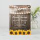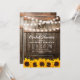 ¡Bienvenidos a una celebración llena de encanto rústico! Nuestras invitaciones rústicas a la fiesta de la ducha de novias incluyen un hermoso fondo de barrica de roble oscuro, luces de cuerda brillante, girasoles dorados amarillos, su monograma y letras blancas modernas. Con estas invitaciones, usted puede crear un ambiente único, moda y atemporal para su día especial. Estas invitaciones son muy agradables y crean un ambiente elegante y natural para su ocasión y le dan un toque de alegría a su ducha de novias.