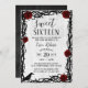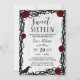 Dulce 16 Rojo Rosa & Cuello Elegante Fairytale Invitaciones Rústicas de Cumpleaños.
