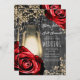 Invitación Rústica linterna brillante roja a Boda gris oscuro