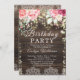 Invitación Rústica Luz de cadena de madera Floral Cumpleaños