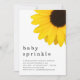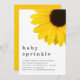 Bebé Sprinkle Shower, flor de girasol amarillo ruidoso. Neutralidad de género. Un hermoso girasol gigante rellena la parte superior derecha y la cabecera es grande abajo en una elegante minúscula con los detalles en la parte inferior. Personaliza fácilmente el texto a tus propios detalles.