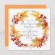 Esta invitación de Acción de Gracias incluye un hermoso marco de hojas de otoño con acuarela, lo que lo hace perfecto para una reunión festiva. La invitación es sencilla y rústica, con un fondo blanco y un texto negro. La acuarela de las hojas de otoño aporta un toque de alegría y diversión, y el diseño general es perfecto para celebrar la fiesta de Acción de Gracias con sus seres queridos. Ya sea que esté planeando una pequeña y íntima reunión o una gran y animada celebración, esta invitación de Acción de Gracias es la manera perfecta de marcar el tono para su día especial.