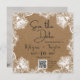 Nuestra tarjeta Save the Date es una manera moderna de invitar a sus huéspedes a su día especial. Cada tarjeta contiene un precioso tipo de letra de guión sobre un fondo rústico impreso en encaje, lo que las hace perfectas para cualquier ocasión. Nuestra invitación personalizada a guardar la fecha de la boda puede ser personalizada con su propia foto y texto, lo que lo convierte en un toque de atención especial para que sus invitados lo aprecien. El primer paso para tu día de sueño empieza aquí. ¡Orden ahora y celebremos juntos! | guardar las fechas y las trampas de la invitación a la boda | creativo guardar los diseños de las tarjetas de fecha | digital guardar la fecha zazzle | compromiso guardar las tarjetas de fecha |