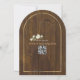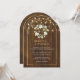 Personalizar el diseño único Rustic Wood String Lights Gold Arch Magnolia Wreath Wedding Invitation (CON un sitio web RSVP ON the BACK) con tu propio texto.