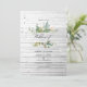 Vegetación floral acuática rústica invitación a bodas de granero en tonos pastel con personalizable de marco geométrico dorado a los detalles de tu evento. Ideal para cualquier tema o boda en el jardín. La foto al revés es opcional. Si prefiere eliminarla, desplácese hasta la parte inferior de "Personalizar esta plantilla" y haga clic en "Editar usando la herramienta de diseño". En la Herramienta de diseño puede editar, escalar, eliminar o mover cualquier texto o elemento de diseño que desee.