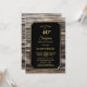 Una rústica invitación a cenar en madera bordeada de oro, con una invitación de 40 años, con un texto dorado sobre fondo negro.