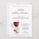 Rústico 60 cumpleaños Invitación de Kraft a la fiesta de cumpleaños sorpresa de Red Wine. Invitación a la fiesta de cumpleaños 60 para ella o él. Invitación con una copa de vino tinto, rosas y ramas sobre un fondo blanco. El texto es totalmente personalizable - personalizarlo con tu nombre, cualquier edad - 30.º 40.º 50.º 70.º 80.º 90.º 100, fecha y hora, ubicación y RSVP. Puede usar la invitación para la fiesta de cumpleaños sorpresa o borrar el texto sorpresa.