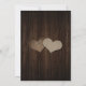 Personalizada invitación rústica a la ducha de novias con tarro de masón con un frasco de masón con dos corazones de bupón sobre un fondo de madera de grano. Elementos coincidentes disponibles.