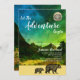 Los osos rústicos de los bosques y las montañas permiten que la aventura empiece la invitación a la ducha de bebé, que incluye compas y un oso bebé y mamá caminantes con un paisaje natural de montaña exuberante y tipo de garrapata. Personalizar con su información. El lado inverso si la tarjeta muestra el paisaje de la montaña y las palabras: comienza el viaje.