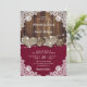 Invitación Rústico Boda de encaje de madera de borgoña de ará