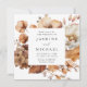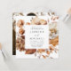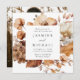 Esta rústica invitación a la boda floral captura la esencia de la romántica temporada de otoño con cálidos tonos de marfil, crema, marrón y naranja de óxido. El diseño cautivador combina perfectamente la belleza de la caligrafía con un marco cuadrado de flores de otoño y delicado follaje, que se revive a través del arte de las acuarelas, creando un conservador realmente fascinante para su día especial. Personalice la elegante invitación de bodas de otoño con sus nombres y detalles de boda. La parte posterior de la invitación a la boda de otoño muestra su foto de compromiso cuadrado y de sangre completa. Este diseño se coordina con nuestra colección Rustic Autumn Floral boda.