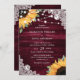 Invitación Rústico Boda de girasol de la madera de borgoña