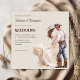 Este diseño de invitación es la mezcla perfecta entre el encanto del rancho occidental y la elegancia del boho, creando una introducción agradable y memorable a su día especial. El ilustracion de la pareja le aporta un toque único y acogedor que los huéspedes seguramente recordarán.