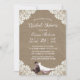Invitación Rústico Burlap White Lace Lovebirds Ducha de novia