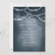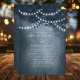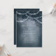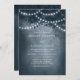 La Cadena De Árbol Dreamy Rústica Azul De La Marina Enciende La Invitación. Este diseño presenta un árbol de ensueño rústico etéreo en el bosque con hermosas y brillantes lámparas de cuerda y un fondo que tiene un suave resplandor y un sueño. Este elegante diseño forestal se puede personalizar con sus propios detalles bodas. Ideal para un boda al aire libre.
