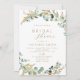 La invitación a la ducha de novias rústica incluye hojas de Relieve metalizado de oro falsas, flores botánicas de eucalipto de color agua y escritura moderna de moda y letra, elegante y romántica, ideal para boda rústico moderno, bodas en el jardín botánico y bodas en el campo boho. Vea todas las piezas coincidentes de la colección a continuación.