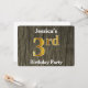 Este diseño de invitación presenta el número ordinal "3rd" con un aspecto falso dorado. También tiene un nombre personalizado y un estilo rústico de madera falsa. Los detalles del evento en la parte posterior se pueden personalizar. Se podría usar para invitar a la gente a la fiesta de tercer cumpleaños de alguien. [~Z0000016]