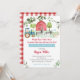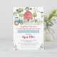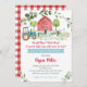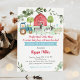 Esta invitación incluye bonitos animales de granja con acentos verdes.