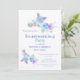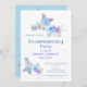 Una rústica invitación a una fiesta de bienvenida de color azul floral.