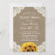 Invitación Rústico girasol Burlap White Lace Bridal Shower