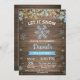 Invitación Rústico invierno copo de nieve azul y niño dorado